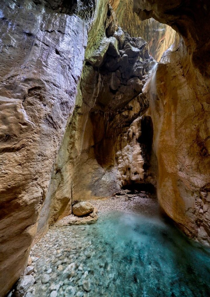 Canyon and natural cave with an internal waterfall.